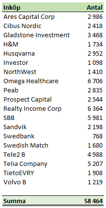 Under november har jag varit väldigt aktiv gällande köp och sälj. Bland annat frigjordes mycket kapital i form av försäljningar av fondandelar till fördel för enskilda aktier. Totalt såldes fonder för 59 595 kr och en vinsthemtagning i Nibe på 3 368 kr.