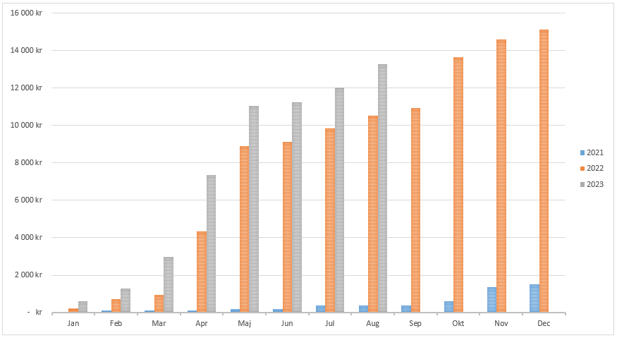 Det blir inte någon större uppdatering av hur läget kring utdelningar har varit under sommaren. Det är bara småpotatis som ramlat in. Däremot tänkte jag bjuda på hur det ser ut på ackumulerad nivå sedan 2021.
